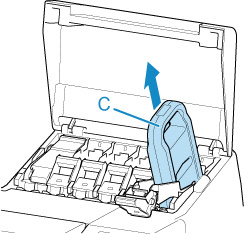 Rimuovere il serbatoio d'inchiostro afferrando i punti di presa (C), quindi toccare OK.