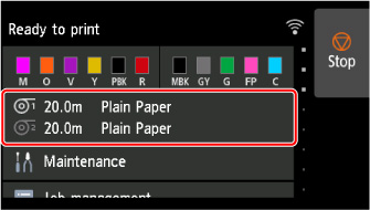 Toque na área de exibição das configurações do papel na tela Inicial da tela sensível ao toque.