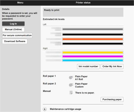 Cuando termine de comprobar el estado de la impresora y de cambiar la configuración del dispositivo, seleccione Cerrar sesión (Log out).