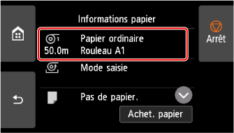 Sélectionnez la zone d'affichage des paramètres du papier sur l'écran Accueil.
