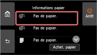 Sélectionnez la zone d'affichage des paramètres du papier sur l'écran Accueil.