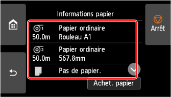 Sélectionnez la zone d'affichage des paramètres du papier sur l'écran Accueil.