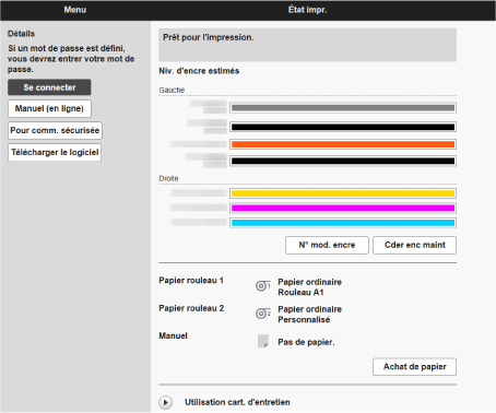 Après avoir vérifié l'état de l'imprimante et modifié les paramètres périphérique, sélectionnez Se déconnecter.