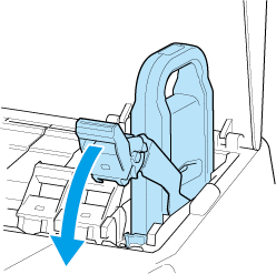 Poussez la partie poignée du levier de verrouillage de cartouche d'encre fermement en l'enfonçant jusqu'au bout.