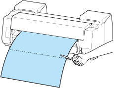 넓은 폭의 인쇄된 문서를 배출하여 절단할 때는 두 명이 문서를 받쳐야 합니다. 용지가 떨어지면 인쇄물이 손상될 수 있습니다.