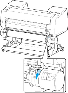 Переведите переключатель Фиксатор держателя рулона на блоке рулона в положение разблокировки.