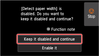 Установка для параметра Определение ширины бумаги (Detect paper width) значения Выключить (Disable)