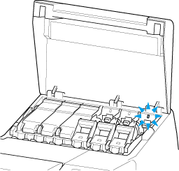 - Не оставляйте принтер без установленных чернильных контейнеров на длительное время (месяц или более). Оставшиеся чернила могут загустеть внутри принтера и повлиять на качество печати.