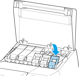 Если чернильный контейнер не помещается в держатель, не прилагайте усилия. Установите повторно, проверив цвет этикетки, цвет чернильного контейнера и положение чернильного контейнера.