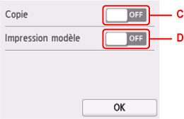 • D: Sélectionnez l'impression recto verso des formats modèles sur l'imprimante comme paramètre par défaut.