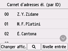 Si vous avez déjà enregistré les destinataires et qu'ils sont affichés par nom, sélectionnez Changer affic. Les destinataires enregistrés sont affichés par numéro ID.