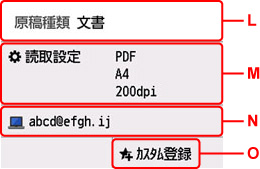 [スキャン]を選ぶ保存/転送先を選択する画面が表示されます。