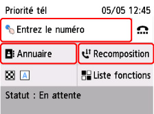 Saisie des numéros de fax/téléphone ou recomposition :