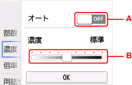 A:選んで、自動濃度調整をオン/オフします。