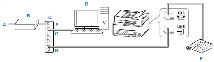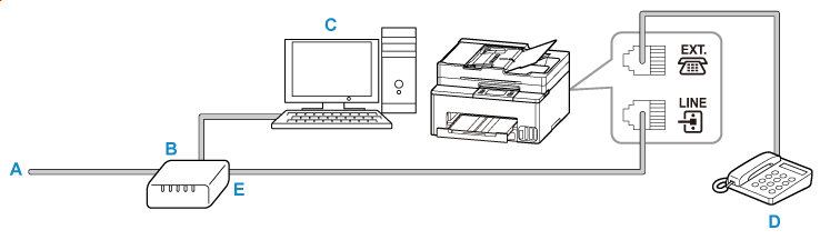 ここで紹介する接続方法は代表例です。すべての接続を保証するものではありません。詳しくは、プリンターと接続するネットワーク機器(xDSL(Digital Subscriber Line)モデムやターミナルアダプターなどの制御装置)に付属している取扱説明書を参照してください。