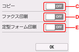 • E:プリンターに内蔵されている定型フォームを印刷をするときの両面印刷を設定します。