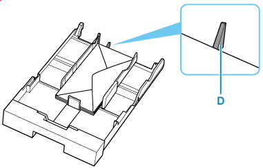 Este posibil ca hârtia să nu fie alimentată corect în imprimantă dacă aceasta apasă pe protuberanţă (D).