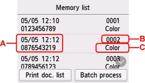 Chọn tài liệu để xóa trên màn hình Danh sách bộ nhớ(Memory list), chọn Xóa tài liệu chỉ định(Delete specified doc.).