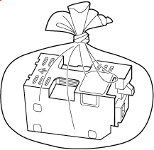 Đặt hộp đã sử dụng ngay lập tức vào túi nhựa đi kèm với hộp bảo trì mới và niêm phong túi bằng cách buộc chặt miệng để tránh mực bị rò rỉ.