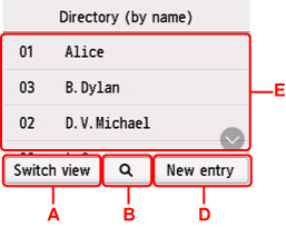 • B: حدد لعرض الشاشة الخاصة بتحديد حرف أولي. وسيمكنك البحث عن المستلم المسجل بالحرف الأولي.