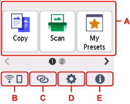 قم بلمس شاشة الصفحة الرئيسية الموجودة في شاشة باللمس بطرف إصبعك لتحديد قوائم خاصة بالنسخ والمسح الضوئي والوظائف الأخرى.