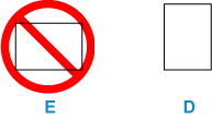 قم دائمًا بتحميل الورق بالاتجاه الطولي (D). يمكن أن يؤدي تحميل الورق بالاتجاه العرضي (E) إلى انحشار الورق.