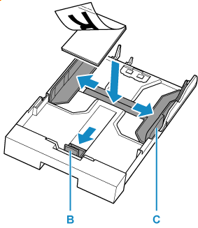 قم بإزاحة موجهي الورق (B) الموجود في المقدمة والآخر (C) الموجود على اليمين لفتح الموجهين.