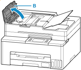 Folosind cârpa uscată pregătită, ştergeţi praful de hârtie din interiorul capacului alimentatorului de documente (C).