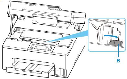 Xoay cần gạt van mực (B) sang bên phải.