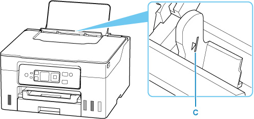 Posunutím pravého vodítka papíru (B) otevřete obě vodítka papíru.