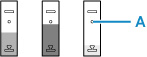 Enne tegevust Prindipeas tindi vahetamine (Replace Ink in Print Head) kontrollige kõigi värvide järelejäänud tindi taset. Lisage vastava värvi tindimahuti, kui järelejäänud tindi tase on alla punkti (A).