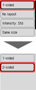 Vajutage kopeerimise ooterežiimi ekraanil prindisätete ekraani kuvamiseks nuppu OK ja valige seejärel kahepoolne printimine, mis asub valiku Muud (Others) all.