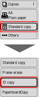 Trükkimismäärangute ekraani kuvamiseks vajutage kopeerimise ooterežiimi kuval nuppu OK ja seejärel valige suvand ID koopia (ID copy).