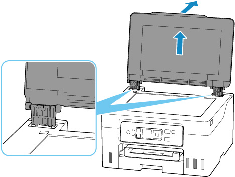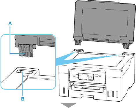 Sobitage dokumendikaane hinged (A) hoidikusse (B) ja sisestage mõlemad dokumendikaane hinged vertikaalselt.