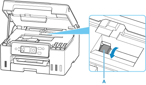 Pöörates tagumisel alusel olevat paberisöötja rullikut (A) rohkem kui kaks täisringi, pühkige seda korralikult välja väänatud niiske lapiga.