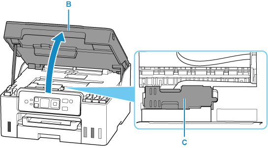 Avage skannimisseade/kaas (B).