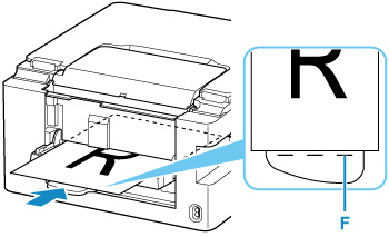 Lükake paber printerisse, kuni paberitoel olev joon (F) on nähtav.