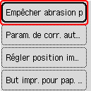 Cette section présente la procédure à suivre pour modifier les paramètres, en suivant les étapes permettant de spécifier comment empêcher l'abrasion comme exemple.