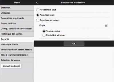Un administrateur peut limiter ou autoriser l'utilisation de la fonction de copie de l'imprimante.