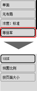 选择按页面大小时,根据原稿的不同,可能无法正确检测页尺寸。 打印机无法正确检测纸张时,指定缩放倍率或选择预置比例进行复印。