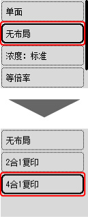 如果选择4合1复印,可以指定原稿的方向和顺序。