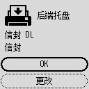 装入信封后,LCD屏幕上会出现后端托盘的纸张设置确认屏幕。