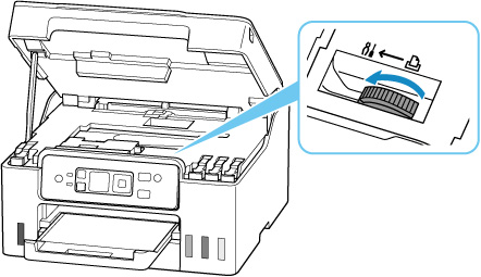 Закрийте чорнильний клапан, посунувши важілець чорнильного клапана ліворуч до зупинки.