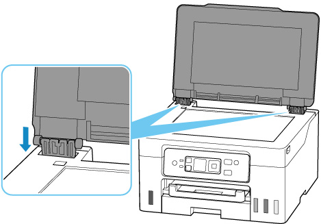 Sobitage dokumendikaane hinged (A) hoidikusse (B) ja sisestage mõlemad dokumendikaane hinged vertikaalselt.
