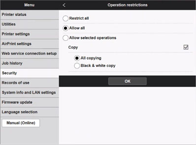 Valige Operation restrictions.