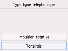 - Sélectionnez cette option lorsque le type de ligne téléphonique est défini sur la numérotation par tonalité.