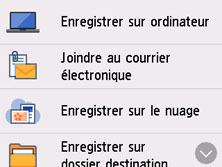 Numériser dans l'écran ACCUEIL.L'écran permettant de sélectionner l'emplacement dans lequel enregistrer/transmettre les données s'affiche.