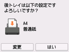 表示された用紙のサイズと種類が、後トレイにセットした用紙と同じであれば、[はい]を選びます。