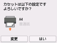 表示された用紙のサイズが、カセットにセットした用紙と同じであれば、[はい]を選びます。