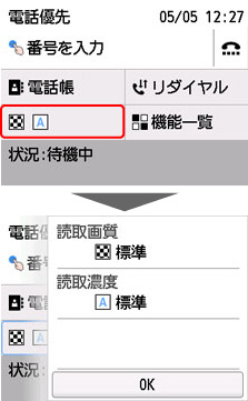 設定を完了した後[OK]を選ぶと、ファクス待機画面に戻ります。